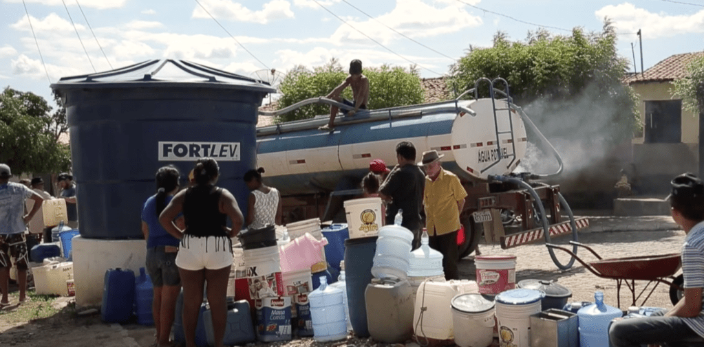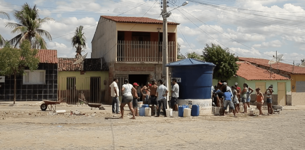 Brejo do Cruz, Brasile, a causa della siccità l’acqua viene erogata solo due volte la settimana. Di solito le siccità si verificano ogni 10 anni, oppure durano due o tre anni. Ad oggi sono 7 anni che la zone è colpita da siccità. Le piogge solitamente cadono tra febbraio e maggio e la strategia è accumularle nel bacino Armando Ribeiro Goncalves, diga costruita a metà anni ‘80 capace di contenere 2400 metri cubi di acqua. Non è sufficiente però per assicurare il volume di sicurezza idrica.